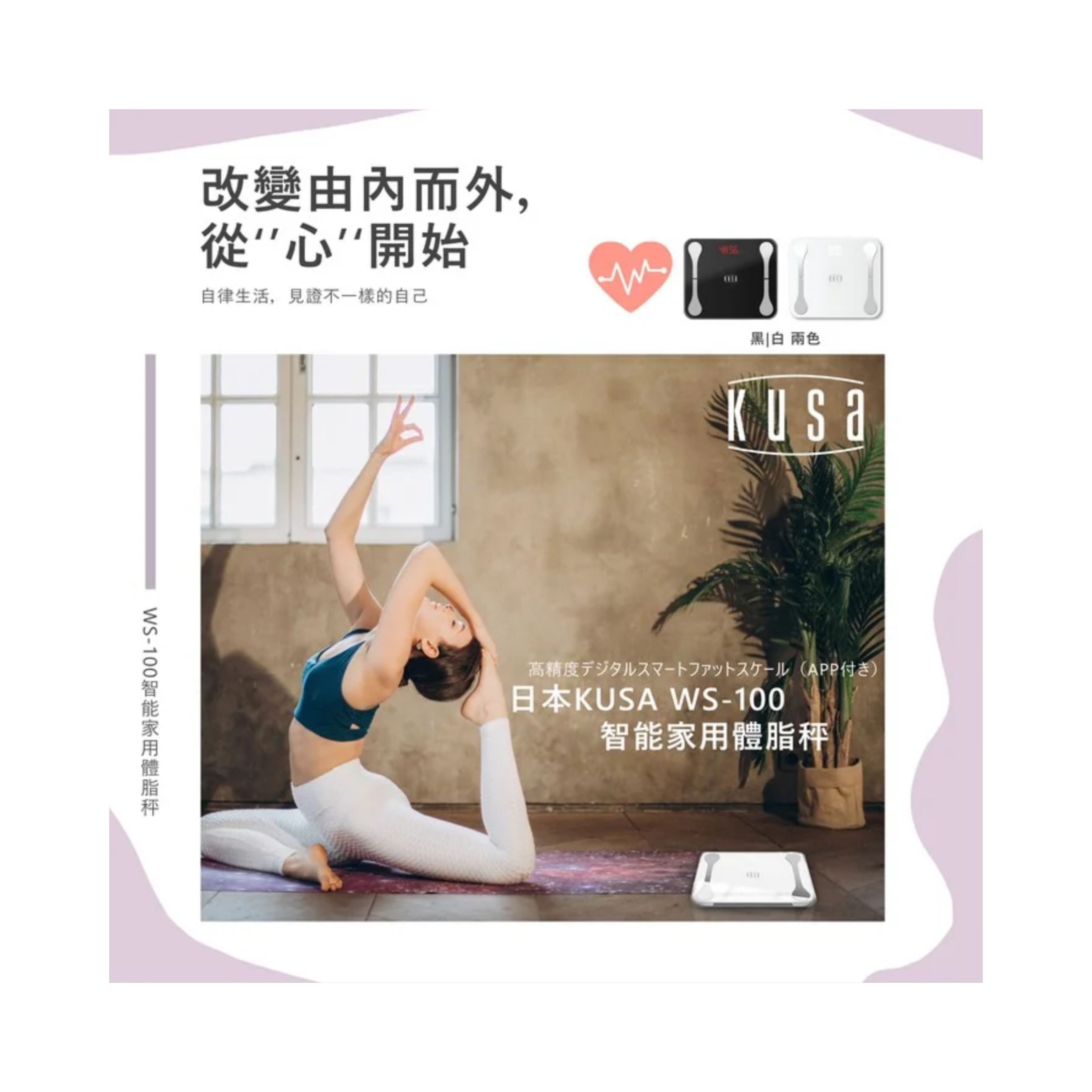 Kusa - 智能體重脂肪磅(帶APP)高精度數字 WS-100-WH